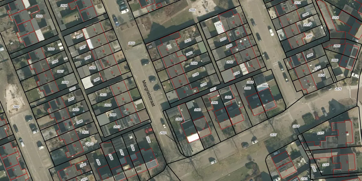 Margrietstraat 25 is gelegen op kadastraal perceel ERP00M2109. Deze kadastrale aanduiding is uniek en wordt gebruikt door het Kadaster om eigendomsrechten en andere zakelijke rechten vast te leggen. Het perceel maakt onderdeel uit van de kadastrale gemeente Erp.