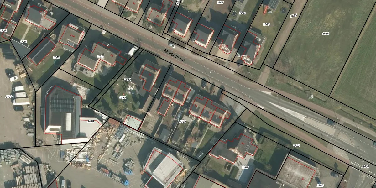 Molentiend 32 is gelegen op kadastraal perceel ERP00E1710. Deze kadastrale aanduiding is uniek en wordt gebruikt door het Kadaster om eigendomsrechten en andere zakelijke rechten vast te leggen. Het perceel maakt onderdeel uit van de kadastrale gemeente Erp.