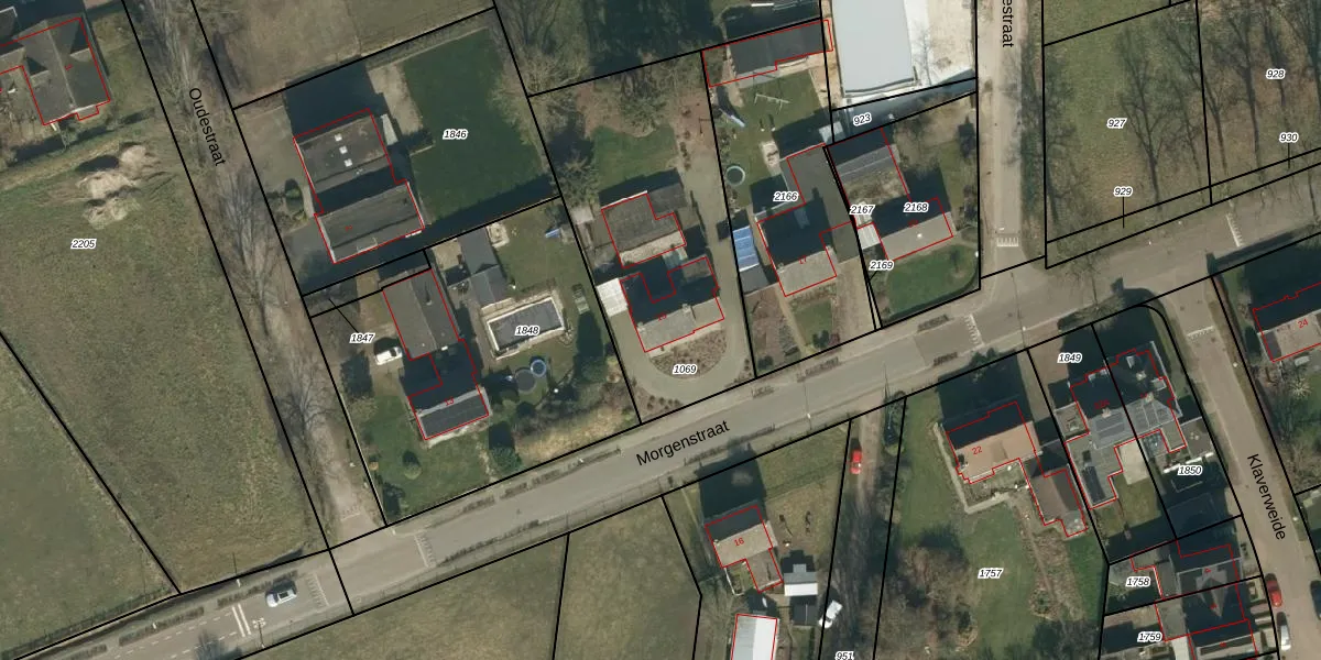 Morgenstraat 15 is gelegen op kadastraal perceel ERP00P1069. Deze kadastrale aanduiding is uniek en wordt gebruikt door het Kadaster om eigendomsrechten en andere zakelijke rechten vast te leggen. Het perceel maakt onderdeel uit van de kadastrale gemeente Erp.
