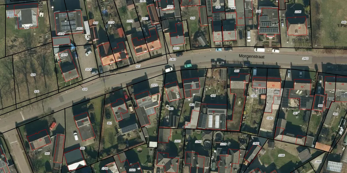 Morgenstraat 32 is gelegen op kadastraal perceel ERP00P962. Deze kadastrale aanduiding is uniek en wordt gebruikt door het Kadaster om eigendomsrechten en andere zakelijke rechten vast te leggen. Het perceel maakt onderdeel uit van de kadastrale gemeente Erp.
