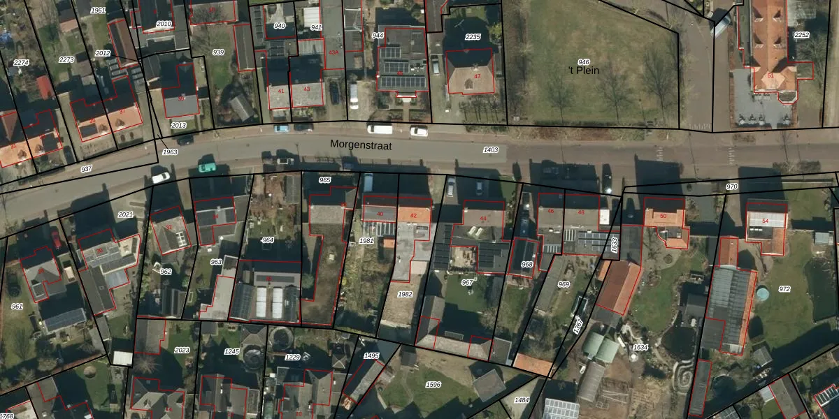Morgenstraat 42 is gelegen op kadastraal perceel ERP00P1982. Deze kadastrale aanduiding is uniek en wordt gebruikt door het Kadaster om eigendomsrechten en andere zakelijke rechten vast te leggen. Het perceel maakt onderdeel uit van de kadastrale gemeente Erp.
