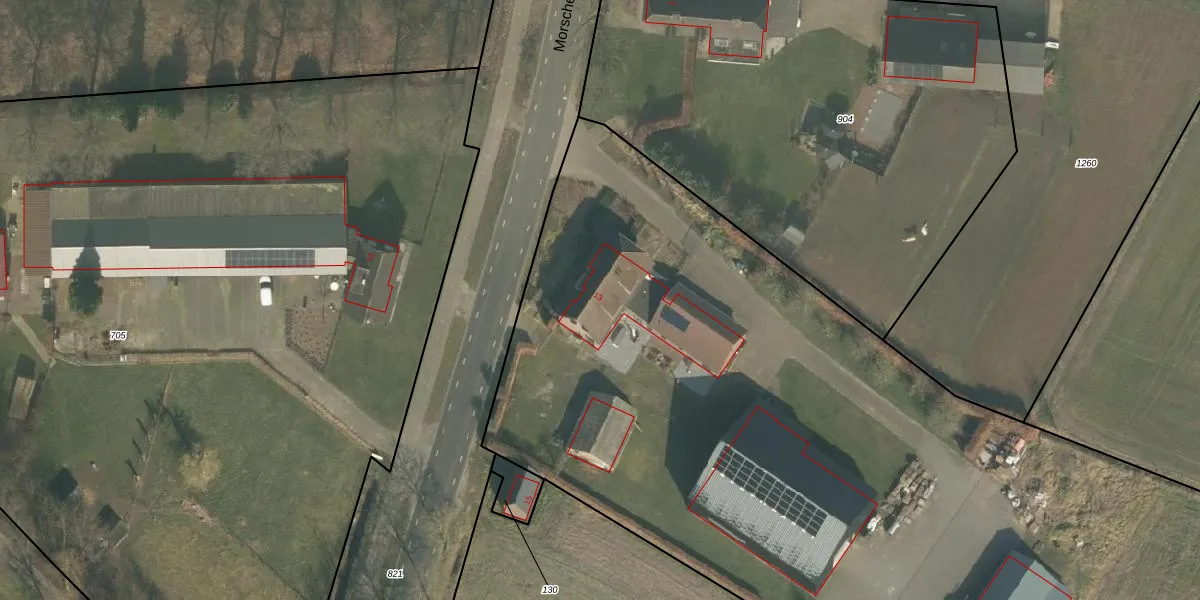 Het perceel waarop Morschehoef 13 staat heeft een oppervlakte van 1,7 ha. Dit is een zeer groot perceel. De perceeloppervlakte wordt geregistreerd door het Kadaster. Gedetailleerde informatie over de maten van dit perceel kunt u vinden in het rapport Kadastrale kaart met maatvoering van Morschehoef 13.