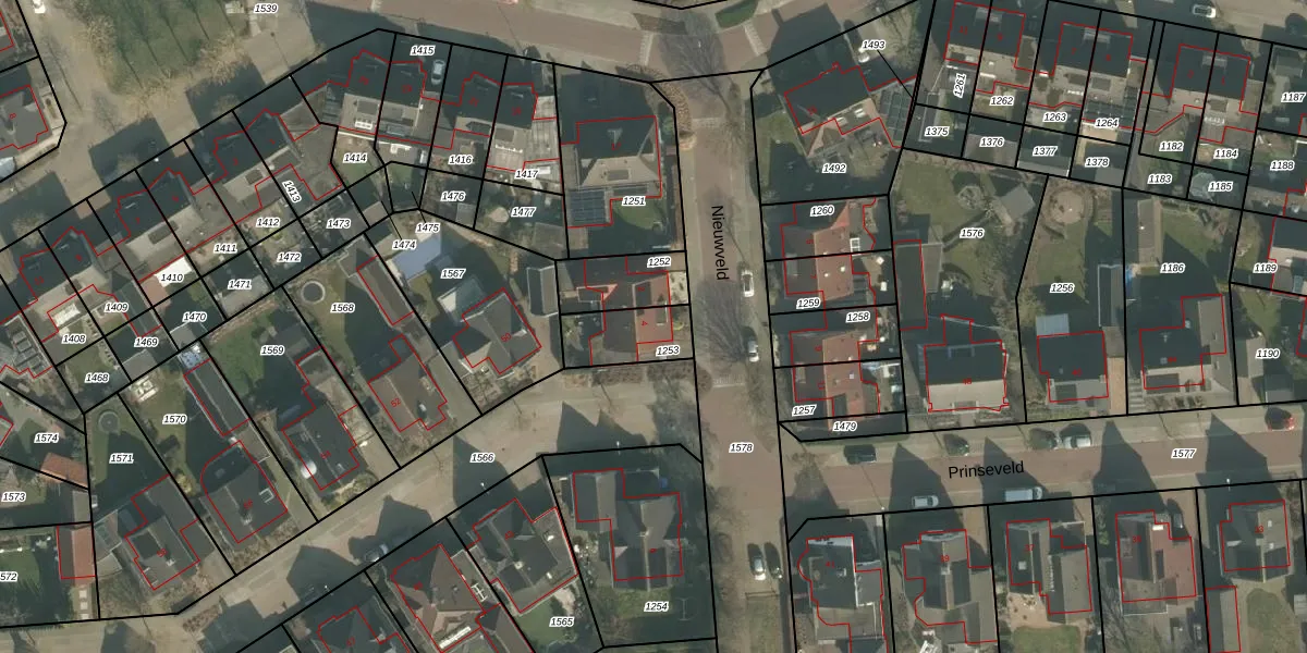 Het perceel waarop Nieuwveld 4 staat heeft een oppervlakte van 166 m². Dit is een middelgroot perceel. De perceeloppervlakte wordt geregistreerd door het Kadaster. Gedetailleerde informatie over de maten van dit perceel kunt u vinden in het rapport Kadastrale kaart met maatvoering van Nieuwveld 4.