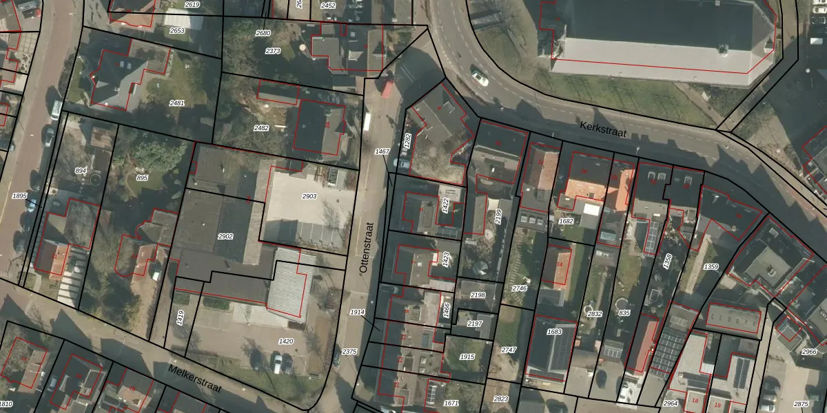 Ottenstraat 5 is gelegen op kadastraal perceel ERP00M1422. Deze kadastrale aanduiding is uniek en wordt gebruikt door het Kadaster om eigendomsrechten en andere zakelijke rechten vast te leggen. Het perceel maakt onderdeel uit van de kadastrale gemeente Erp.