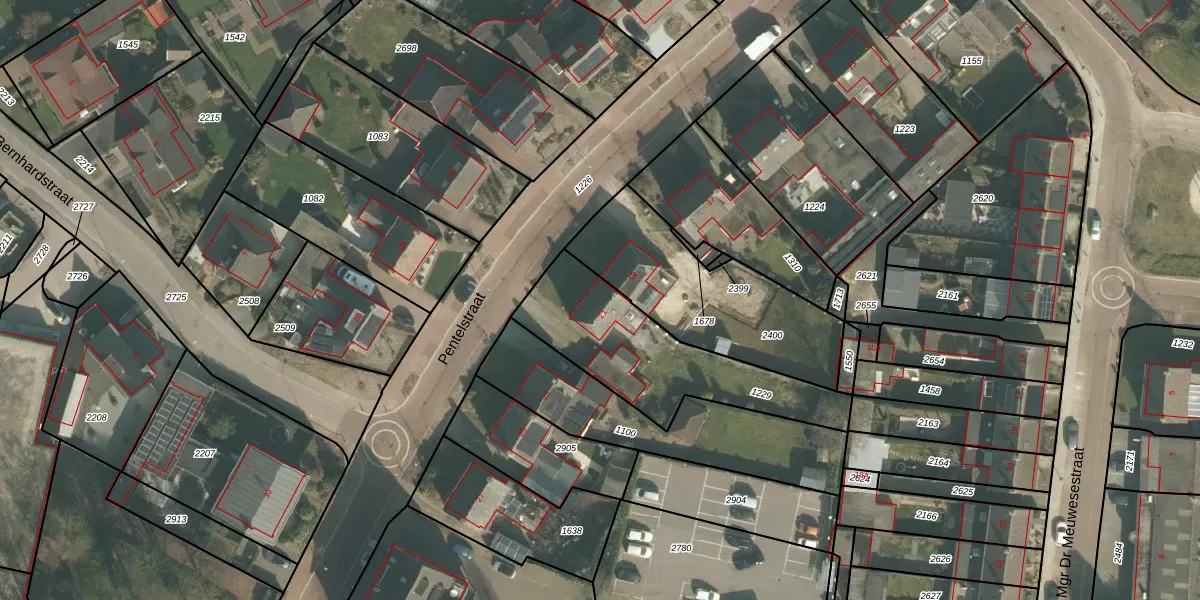 Pentelstraat 21 is gelegen op kadastraal perceel ERP00M1229. Deze kadastrale aanduiding is uniek en wordt gebruikt door het Kadaster om eigendomsrechten en andere zakelijke rechten vast te leggen. Het perceel maakt onderdeel uit van de kadastrale gemeente Erp.