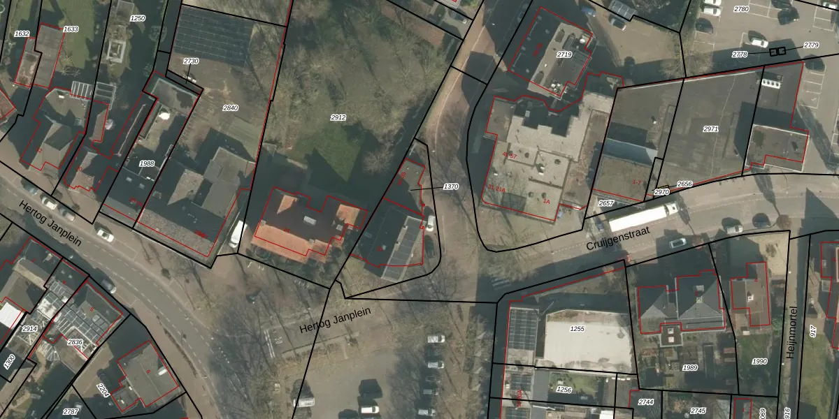 Het perceel waarop het adres ligt is ERP00-M-1370. De afkorting 'ERP00' staat voor kadastrale gemeente Erp. Het perceel is kleiner dan gemiddeld in Erp. Het perceel is 500 m² groot, terwijl het gemiddelde ligt op 6399,47 m². De grootste perceeloppervlakte in de kadastrale gemeente is 1,05 km². De kleinste oppervlakte bedraagt 0 m². Er zijn 4 adressen aanwezig op het perceel. In de Basisregistratie Kadaster (BRK) werden de grenzen van het perceel geregistreerd op 22-03-2005.