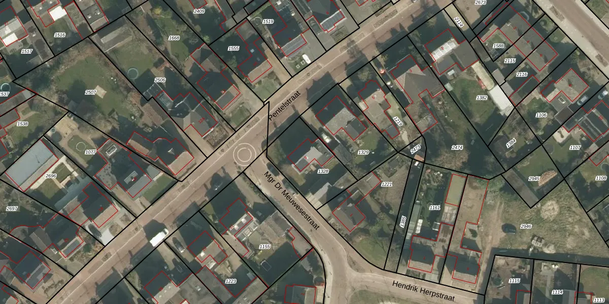 Pentelstraat 9 is gelegen op kadastraal perceel ERP00M1328. Deze kadastrale aanduiding is uniek en wordt gebruikt door het Kadaster om eigendomsrechten en andere zakelijke rechten vast te leggen. Het perceel maakt onderdeel uit van de kadastrale gemeente Erp.