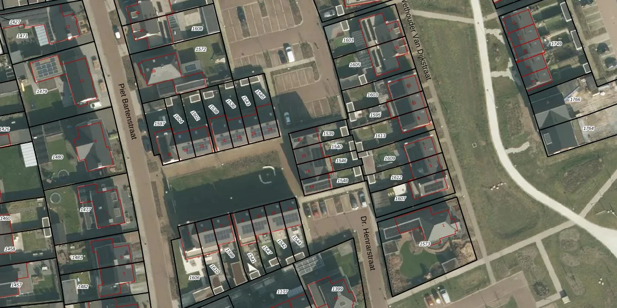 Gebruik de zoekbalk of klik op een perceel voor informatie over de adressen binnen dit perceel.