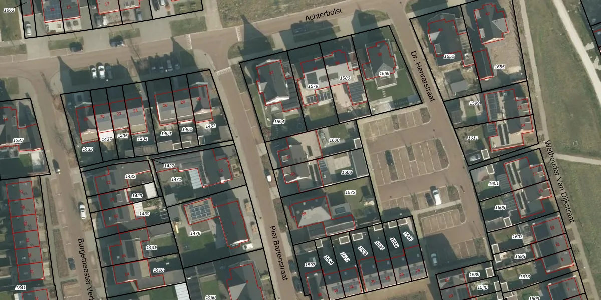 Gebruik de zoekbalk of klik op een perceel voor informatie over de adressen binnen dit perceel.