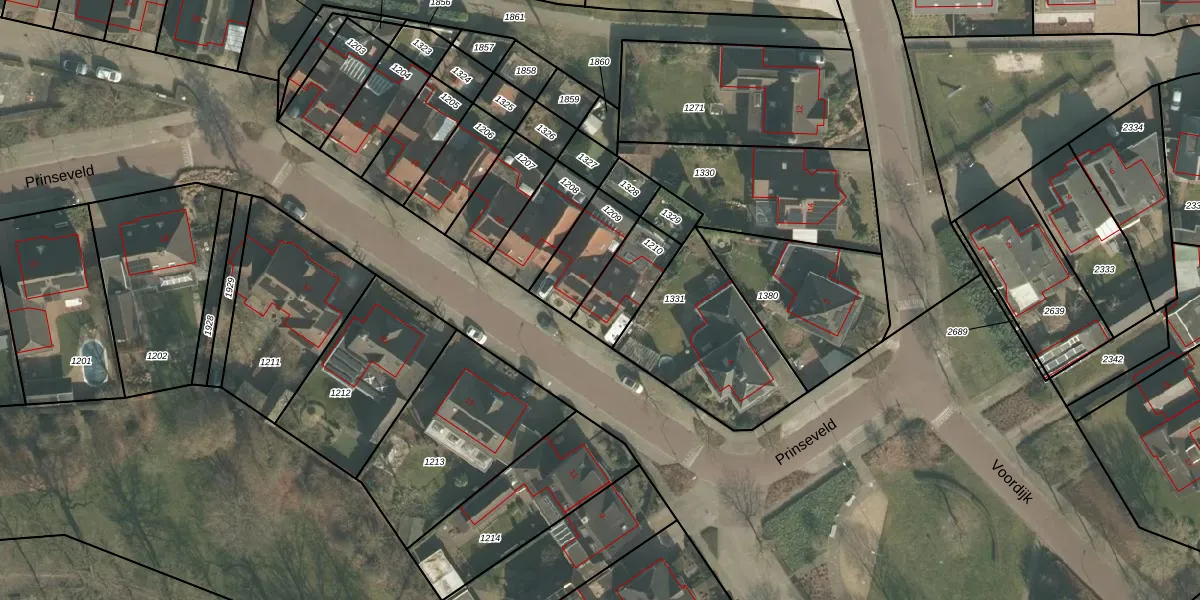 Prinseveld 6 is gelegen op kadastraal perceel ERP00P1210. Deze kadastrale aanduiding is uniek en wordt gebruikt door het Kadaster om eigendomsrechten en andere zakelijke rechten vast te leggen. Het perceel maakt onderdeel uit van de kadastrale gemeente Erp.