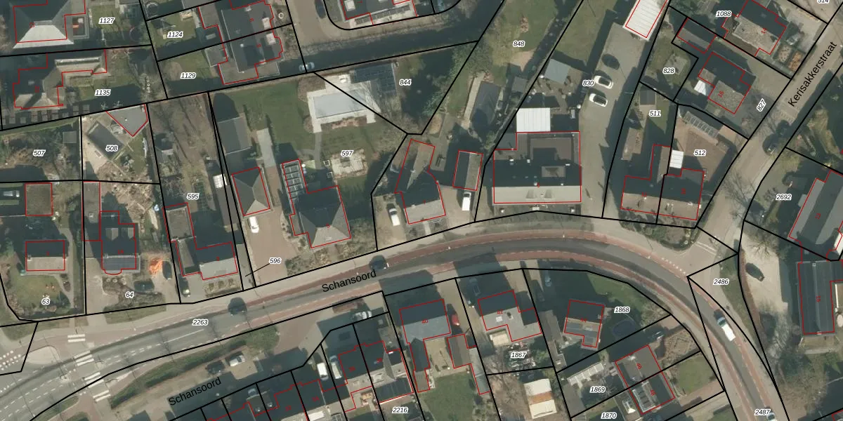 Schansoord 7 is gelegen op kadastraal perceel ERP00R848. Deze kadastrale aanduiding is uniek en wordt gebruikt door het Kadaster om eigendomsrechten en andere zakelijke rechten vast te leggen. Het perceel maakt onderdeel uit van de kadastrale gemeente Erp.