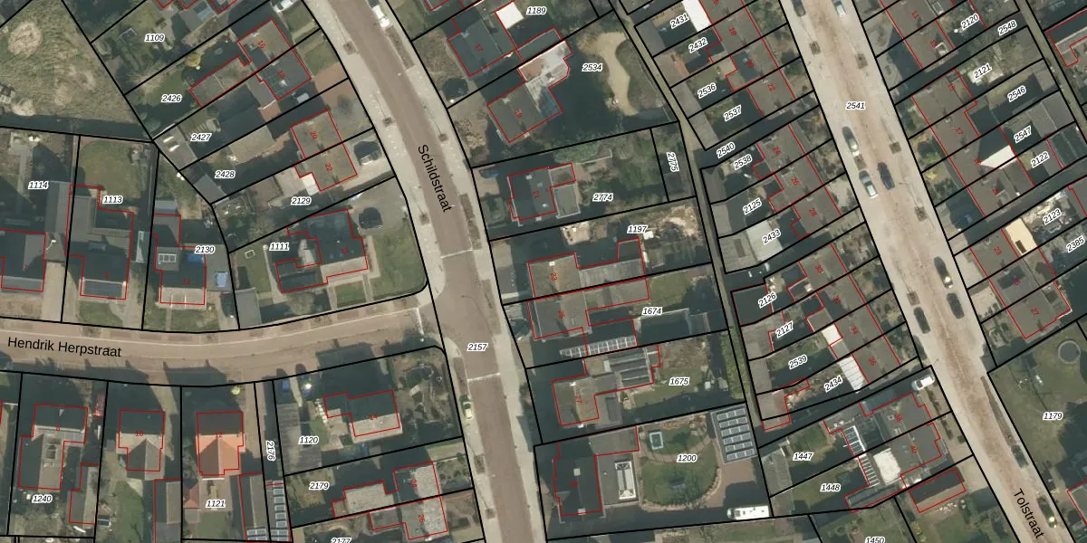Schildstraat 23 is gelegen op kadastraal perceel ERP00M1197. Deze kadastrale aanduiding is uniek en wordt gebruikt door het Kadaster om eigendomsrechten en andere zakelijke rechten vast te leggen. Het perceel maakt onderdeel uit van de kadastrale gemeente Erp.