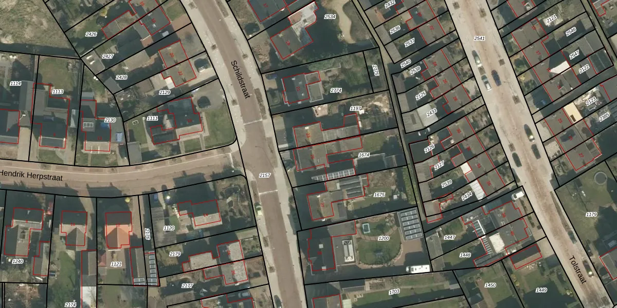 Schildstraat 25 is gelegen op kadastraal perceel ERP00M1674. Deze kadastrale aanduiding is uniek en wordt gebruikt door het Kadaster om eigendomsrechten en andere zakelijke rechten vast te leggen. Het perceel maakt onderdeel uit van de kadastrale gemeente Erp.