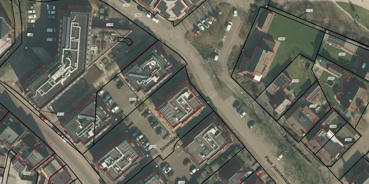 Het perceel waarop Simeonshof 68 staat heeft een oppervlakte van 1992 m². Dit is een zeer groot perceel. De perceeloppervlakte wordt geregistreerd door het Kadaster. Gedetailleerde informatie over de maten van dit perceel kunt u vinden in het rapport Kadastrale kaart met maatvoering van Simeonshof 68.