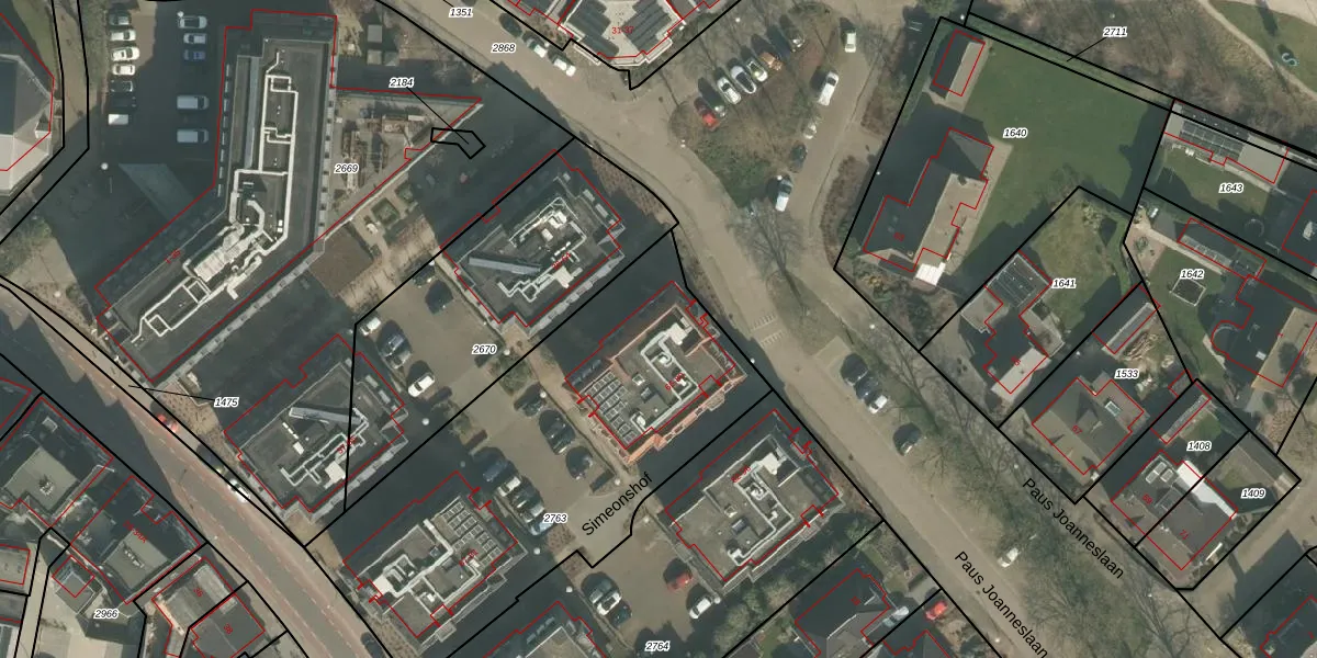 Het perceel waarop Simeonshof 72 staat heeft een oppervlakte van 1992 m². Dit is een zeer groot perceel. De perceeloppervlakte wordt geregistreerd door het Kadaster. Gedetailleerde informatie over de maten van dit perceel kunt u vinden in het rapport Kadastrale kaart met maatvoering van Simeonshof 72.