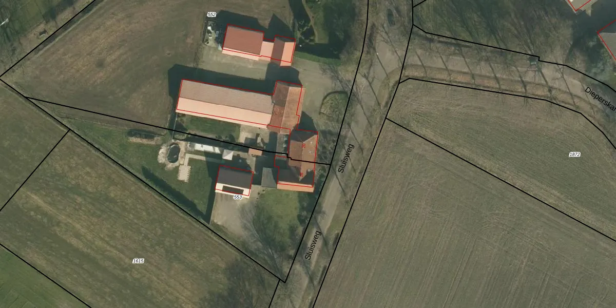 Het perceel waarop Sluisweg 20 staat heeft een oppervlakte van 5985 m². Dit is een zeer groot perceel. De perceeloppervlakte wordt geregistreerd door het Kadaster. Gedetailleerde informatie over de maten van dit perceel kunt u vinden in het rapport Kadastrale kaart met maatvoering van Sluisweg 20.