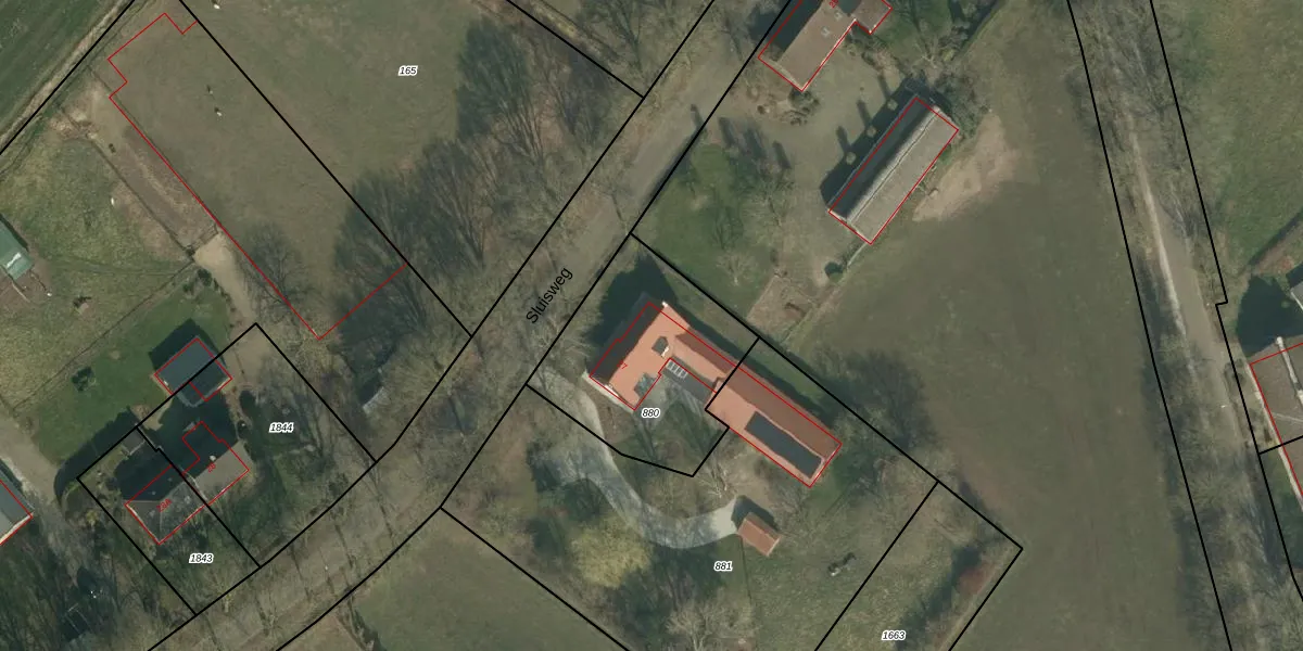 Sluisweg 27 is gelegen op kadastraal perceel ERP00P880. Deze kadastrale aanduiding is uniek en wordt gebruikt door het Kadaster om eigendomsrechten en andere zakelijke rechten vast te leggen. Het perceel maakt onderdeel uit van de kadastrale gemeente Erp.