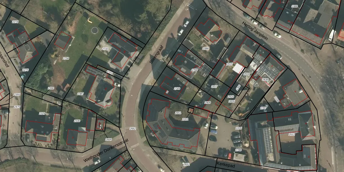 Gebruik de zoekbalk of klik op een perceel voor informatie over de adressen binnen dit perceel.