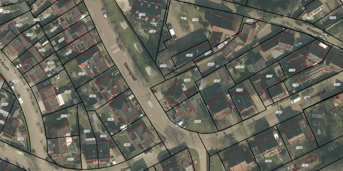 Steengraaf 31 is gelegen op kadastraal perceel ERP00E1654. Deze kadastrale aanduiding is uniek en wordt gebruikt door het Kadaster om eigendomsrechten en andere zakelijke rechten vast te leggen. Het perceel maakt onderdeel uit van de kadastrale gemeente Erp.
