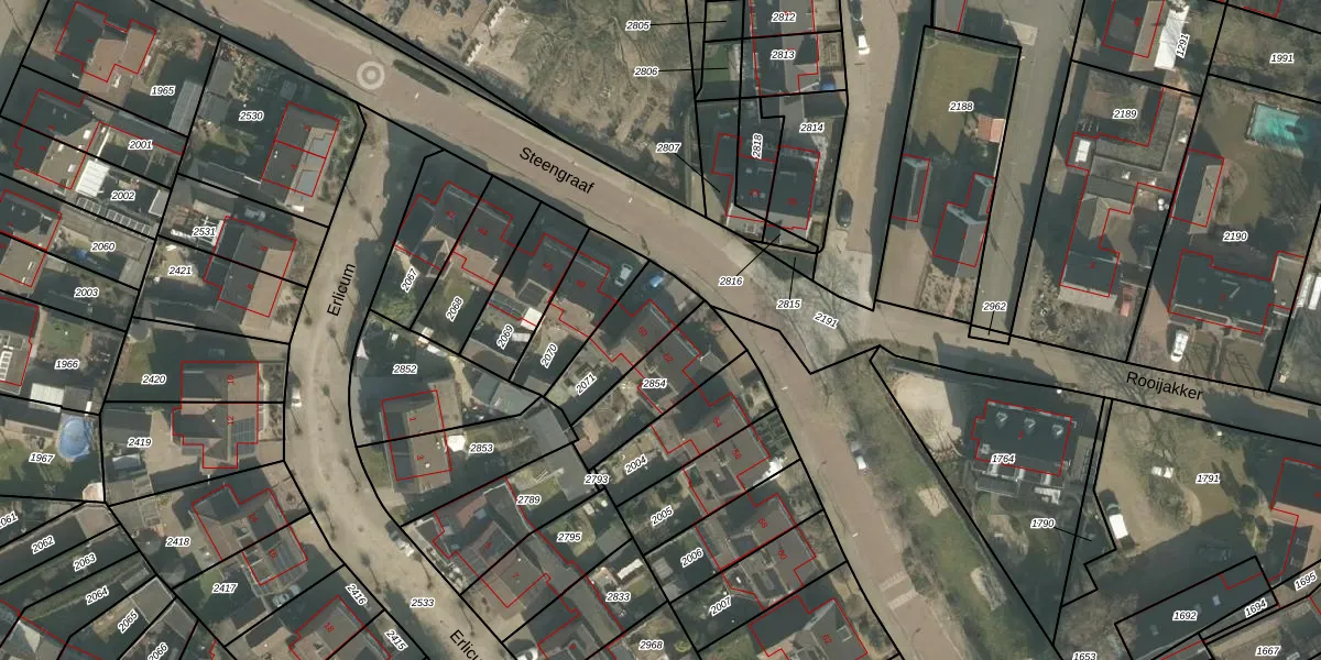 Steengraaf 50 is gelegen op kadastraal perceel ERP00M2071. Deze kadastrale aanduiding is uniek en wordt gebruikt door het Kadaster om eigendomsrechten en andere zakelijke rechten vast te leggen. Het perceel maakt onderdeel uit van de kadastrale gemeente Erp.