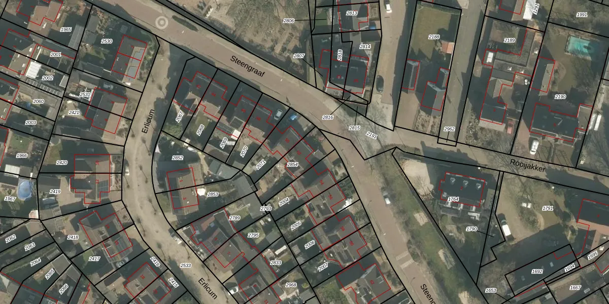 Steengraaf 52 is gelegen op kadastraal perceel ERP00M2854. Deze kadastrale aanduiding is uniek en wordt gebruikt door het Kadaster om eigendomsrechten en andere zakelijke rechten vast te leggen. Het perceel maakt onderdeel uit van de kadastrale gemeente Erp.
