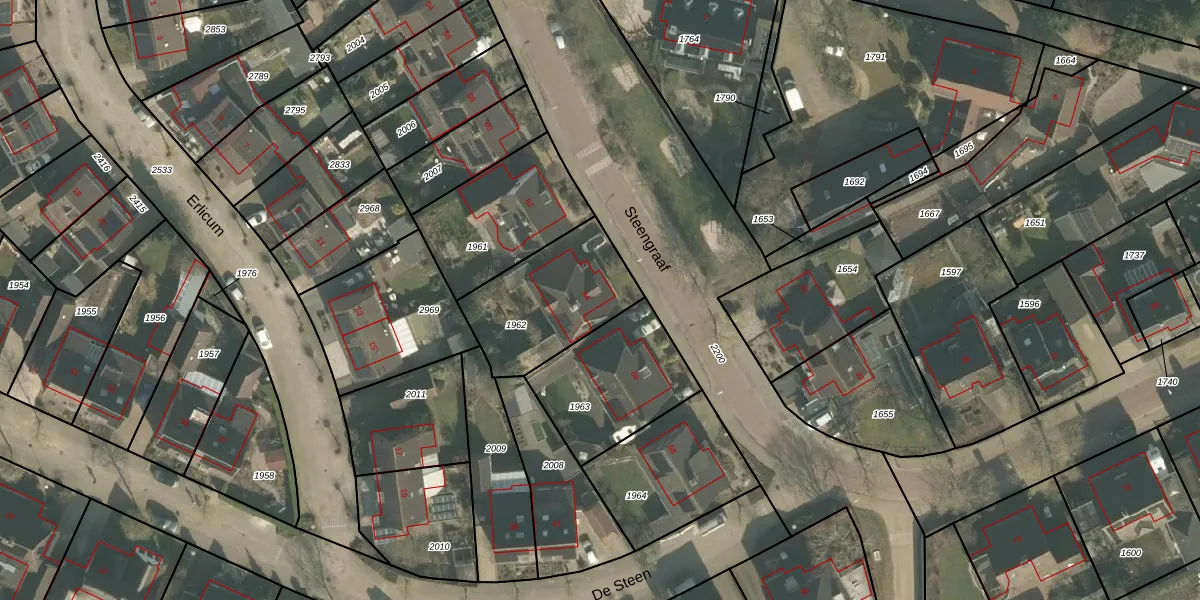 Gebruik de zoekbalk of klik op een perceel voor informatie over de adressen binnen dit perceel.