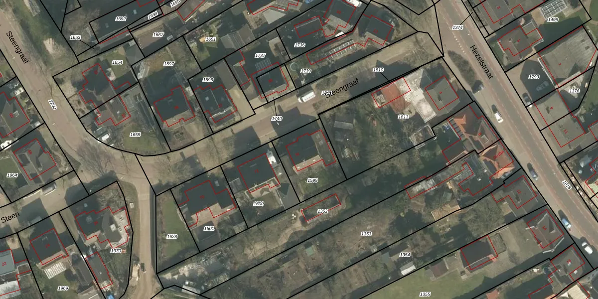 Steengraaf 74 is gelegen op kadastraal perceel ERP00E1599. Deze kadastrale aanduiding is uniek en wordt gebruikt door het Kadaster om eigendomsrechten en andere zakelijke rechten vast te leggen. Het perceel maakt onderdeel uit van de kadastrale gemeente Erp.