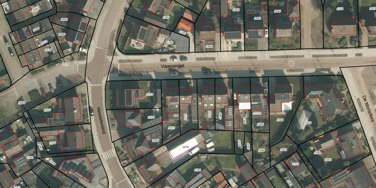 Vaansingel 28 is gelegen op kadastraal perceel ERP00M1571. Deze kadastrale aanduiding is uniek en wordt gebruikt door het Kadaster om eigendomsrechten en andere zakelijke rechten vast te leggen. Het perceel maakt onderdeel uit van de kadastrale gemeente Erp.