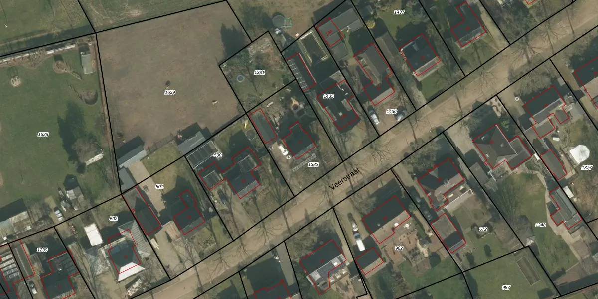 Veerstraat 17 is gelegen op kadastraal perceel ERP00S1382. Deze kadastrale aanduiding is uniek en wordt gebruikt door het Kadaster om eigendomsrechten en andere zakelijke rechten vast te leggen. Het perceel maakt onderdeel uit van de kadastrale gemeente Erp.