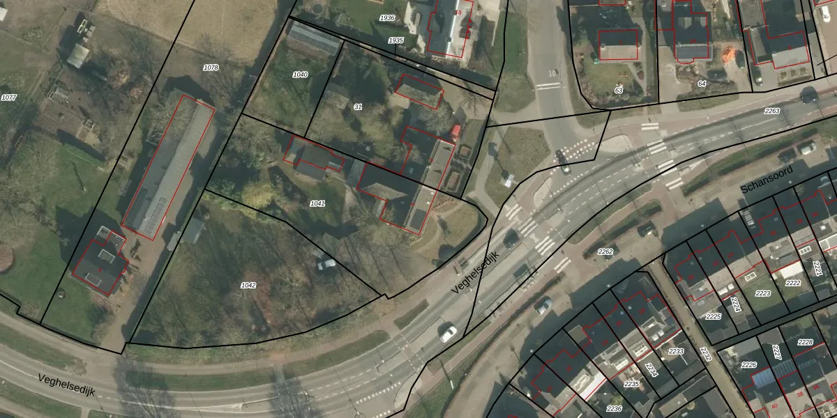 Veghelsedijk 4 is gelegen op kadastraal perceel ERP00R1041. Deze kadastrale aanduiding is uniek en wordt gebruikt door het Kadaster om eigendomsrechten en andere zakelijke rechten vast te leggen. Het perceel maakt onderdeel uit van de kadastrale gemeente Erp.