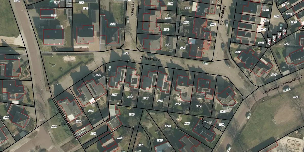 Gebruik de zoekbalk of klik op een perceel voor informatie over de adressen binnen dit perceel.