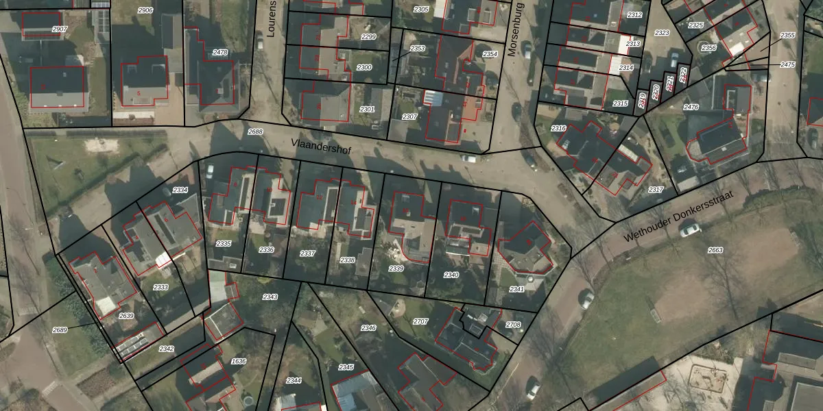 Vlaandershof 16 is gelegen op kadastraal perceel ERP00M2339. Deze kadastrale aanduiding is uniek en wordt gebruikt door het Kadaster om eigendomsrechten en andere zakelijke rechten vast te leggen. Het perceel maakt onderdeel uit van de kadastrale gemeente Erp.