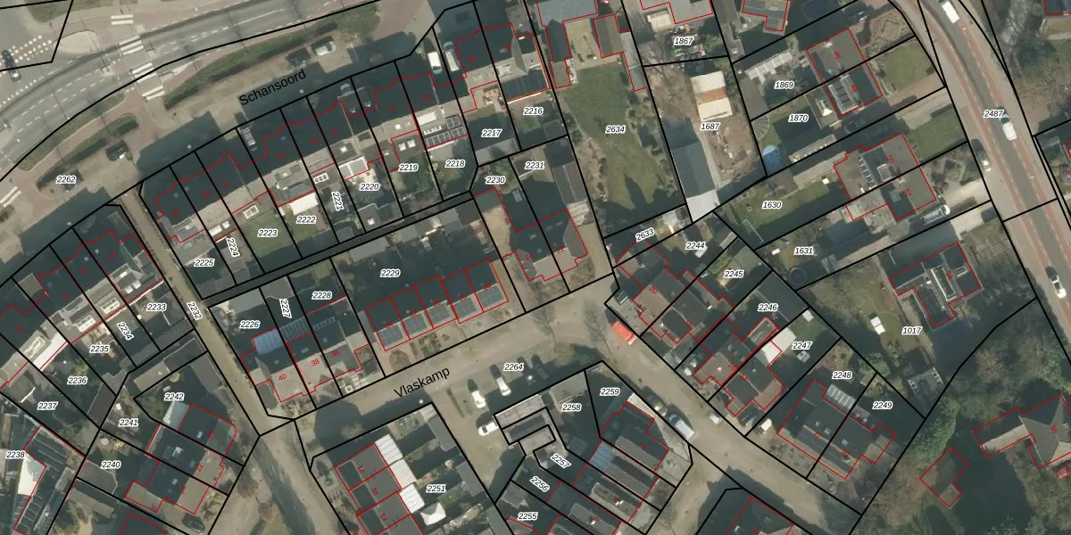 Gebruik de zoekbalk of klik op een perceel voor informatie over de adressen binnen dit perceel.
