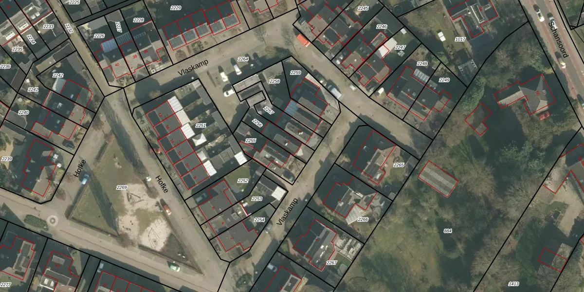 Het perceel waarop Vlaskamp 3 staat heeft een oppervlakte van 165 m². Dit is een middelgroot perceel. De perceeloppervlakte wordt geregistreerd door het Kadaster. Gedetailleerde informatie over de maten van dit perceel kunt u vinden in het rapport Kadastrale kaart met maatvoering van Vlaskamp 3.