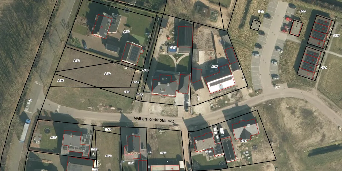 Wilbert Kerkhofstraat 1 is gelegen op kadastraal perceel ERP00R1645. Deze kadastrale aanduiding is uniek en wordt gebruikt door het Kadaster om eigendomsrechten en andere zakelijke rechten vast te leggen. Het perceel maakt onderdeel uit van de kadastrale gemeente Erp.