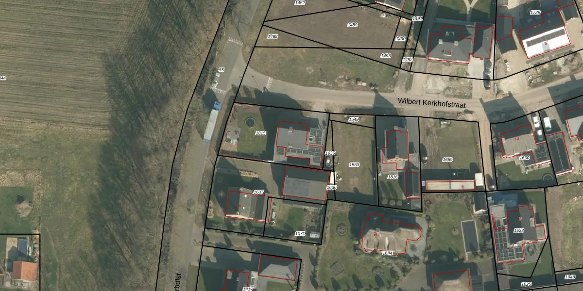 Wilbert Kerkhofstraat 2 is gelegen op kadastraal perceel ERP00R1815. Deze kadastrale aanduiding is uniek en wordt gebruikt door het Kadaster om eigendomsrechten en andere zakelijke rechten vast te leggen. Het perceel maakt onderdeel uit van de kadastrale gemeente Erp.