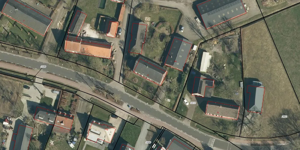 Het perceel waarop Groenstraat 9 staat heeft een oppervlakte van 7915 m². Dit is een zeer groot perceel. De perceeloppervlakte wordt geregistreerd door het Kadaster. Gedetailleerde informatie over de maten van dit perceel kunt u vinden in het rapport Kadastrale kaart met maatvoering van Groenstraat 9.