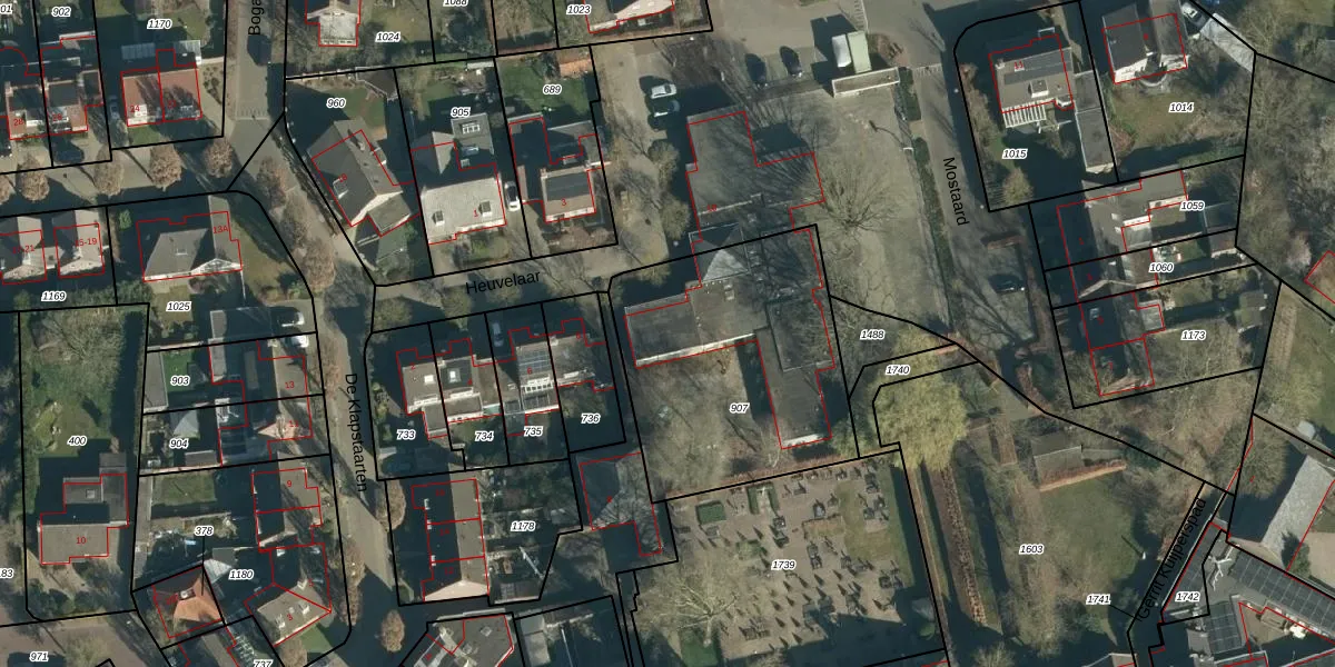 Het adres ligt op het perceel HVR00-L-907, dat zich in de kadastrale gemeente Hilvarenbeek bevindt. De gemiddelde perceelgrootte in Hilvarenbeek is 1,0 ha. Dit perceel is kleiner: de perceeloppervlakte bedraagt 1122 m². De grootste perceeloppervlakte in de kadastrale gemeente is 3,92 km². De kleinste oppervlakte bedraagt 0 m². Er zijn 4 adressen aanwezig op het perceel. De huidige grenzen van het perceel zijn digitaal in de Basisregistratie Kadaster (BRK) geregistreerd op 04-02-2020.
