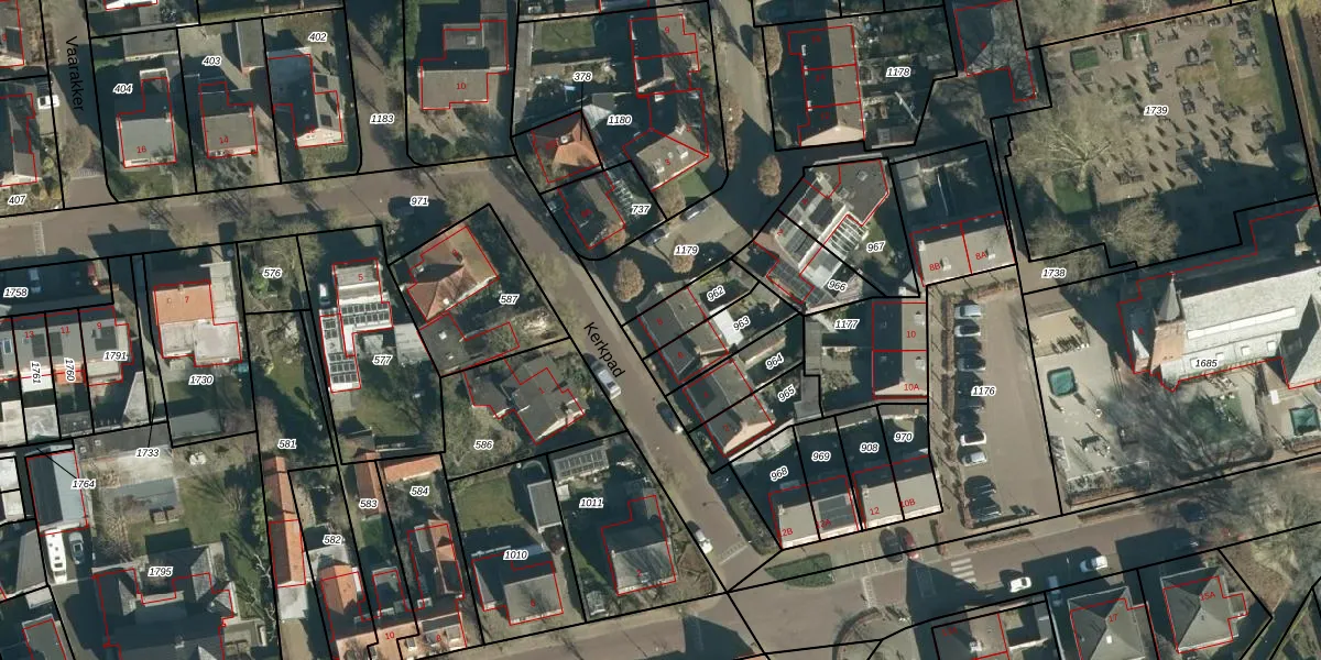 Kerkpad 8 is gelegen op kadastraal perceel HVR00L962. Deze kadastrale aanduiding is uniek en wordt gebruikt door het Kadaster om eigendomsrechten en andere zakelijke rechten vast te leggen. Het perceel maakt onderdeel uit van de kadastrale gemeente Hilvarenbeek.