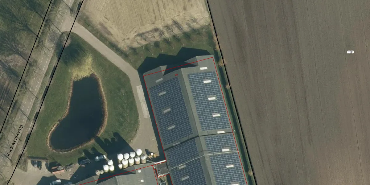 Het perceel waarop Koekovenseweg 2-a staat heeft een oppervlakte van 6,6 ha. Dit is een zeer groot perceel. De perceeloppervlakte wordt geregistreerd door het Kadaster. Gedetailleerde informatie over de maten van dit perceel kunt u vinden in het rapport Kadastrale kaart met maatvoering van Koekovenseweg 2-a.