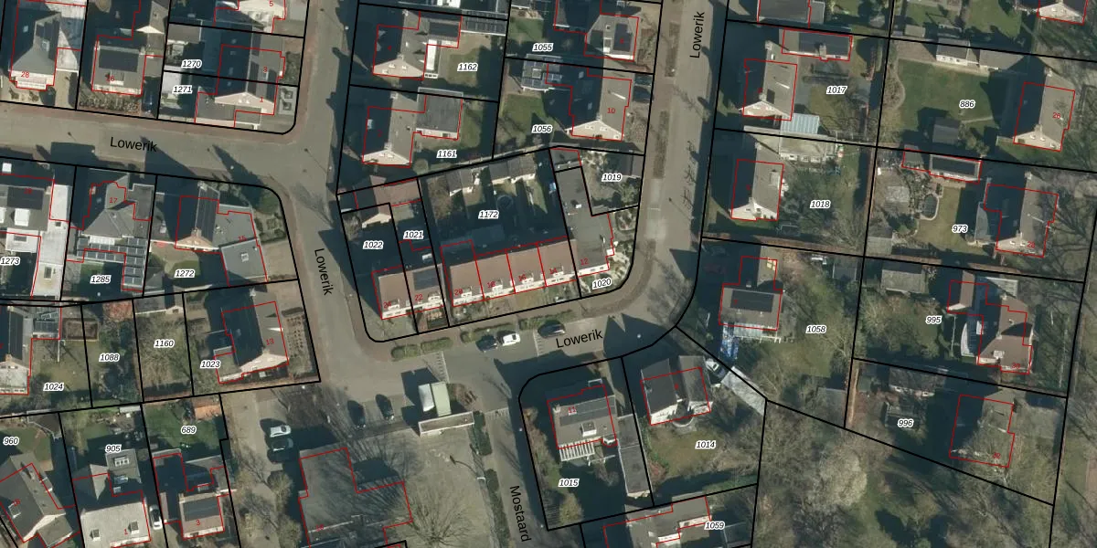 Het perceel waarop Lowerik 14 staat heeft een oppervlakte van 690 m². Dit is een groot perceel. De perceeloppervlakte wordt geregistreerd door het Kadaster. Gedetailleerde informatie over de maten van dit perceel kunt u vinden in het rapport Kadastrale kaart met maatvoering van Lowerik 14.