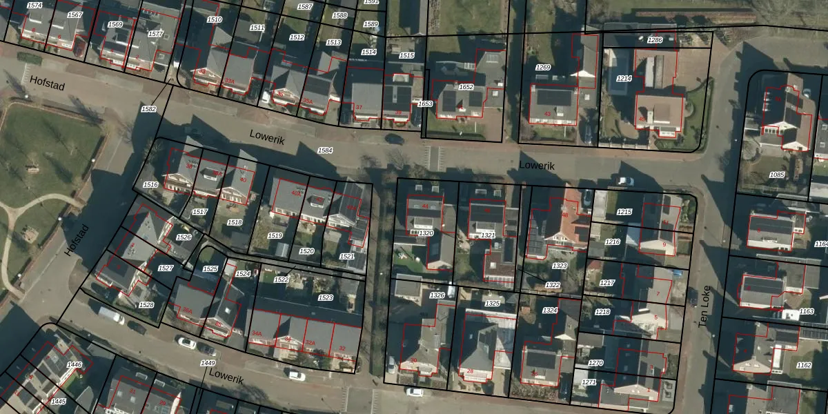 Het perceel waarop Lowerik 44 staat heeft een oppervlakte van 370 m². Dit is een groot perceel. De perceeloppervlakte wordt geregistreerd door het Kadaster. Gedetailleerde informatie over de maten van dit perceel kunt u vinden in het rapport Kadastrale kaart met maatvoering van Lowerik 44.