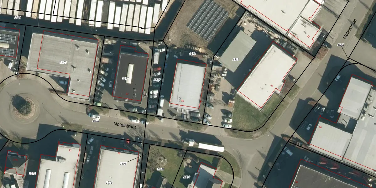 Notelstraat 39 is gelegen op kadastraal perceel HVR00L1479. Deze kadastrale aanduiding is uniek en wordt gebruikt door het Kadaster om eigendomsrechten en andere zakelijke rechten vast te leggen. Het perceel maakt onderdeel uit van de kadastrale gemeente Hilvarenbeek.