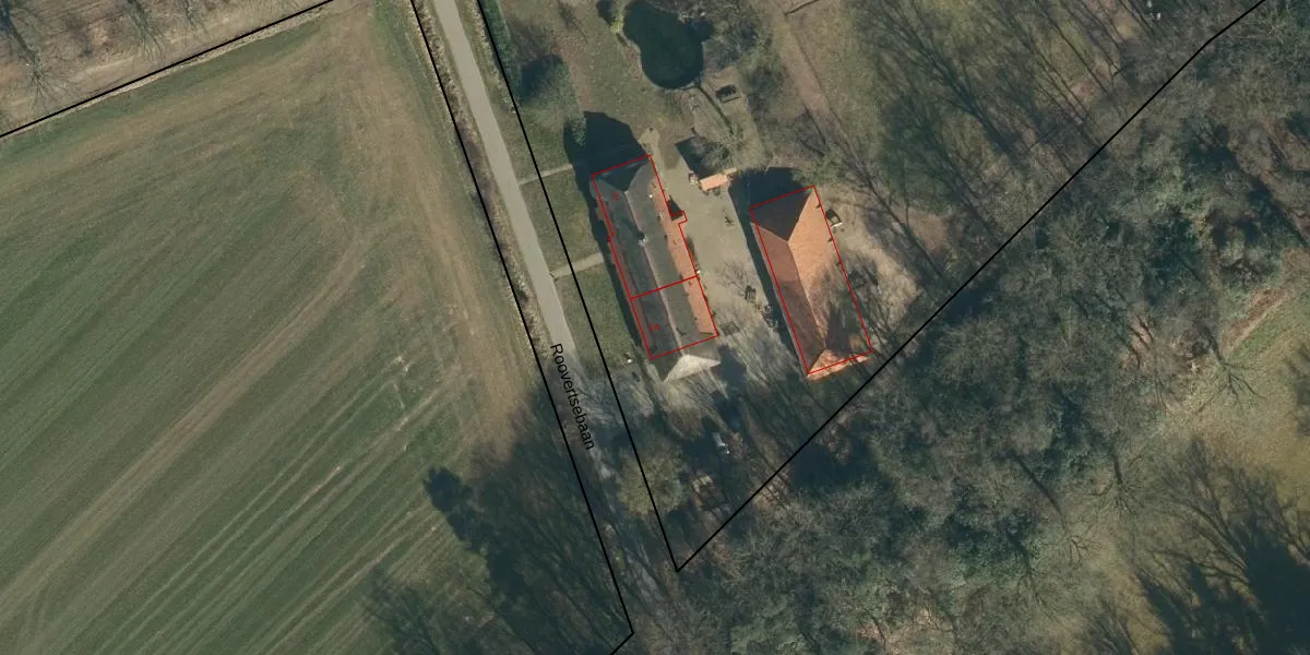 Het perceel waarop Roovertsebaan 2-A staat heeft een oppervlakte van 1,1 ha. Dit is een zeer groot perceel. De perceeloppervlakte wordt geregistreerd door het Kadaster. Gedetailleerde informatie over de maten van dit perceel kunt u vinden in het rapport Kadastrale kaart met maatvoering van Roovertsebaan 2-A.