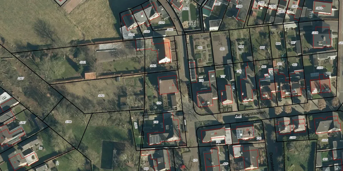 Vaarakker 9 is gelegen op kadastraal perceel HVR00L729. Deze kadastrale aanduiding is uniek en wordt gebruikt door het Kadaster om eigendomsrechten en andere zakelijke rechten vast te leggen. Het perceel maakt onderdeel uit van de kadastrale gemeente Hilvarenbeek.