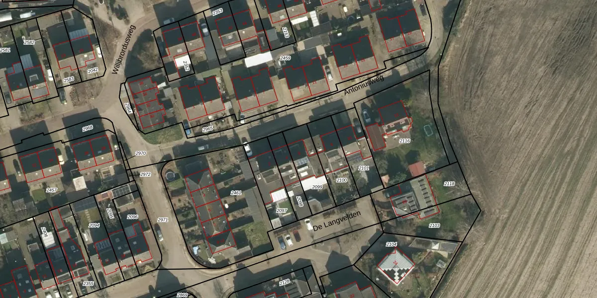 Antoniusweg 6 is gelegen op kadastraal perceel ESC00B2099. Deze kadastrale aanduiding is uniek en wordt gebruikt door het Kadaster om eigendomsrechten en andere zakelijke rechten vast te leggen. Het perceel maakt onderdeel uit van de kadastrale gemeente Esch.