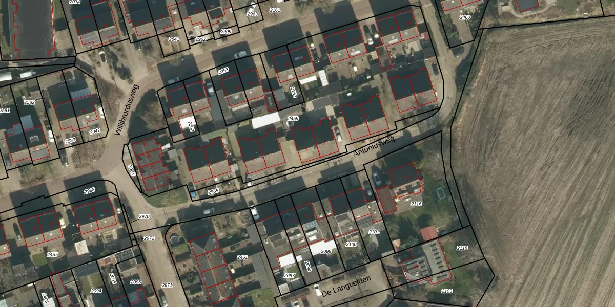 Antoniusweg 9 is gelegen op kadastraal perceel ESC00B2459. Deze kadastrale aanduiding is uniek en wordt gebruikt door het Kadaster om eigendomsrechten en andere zakelijke rechten vast te leggen. Het perceel maakt onderdeel uit van de kadastrale gemeente Esch.