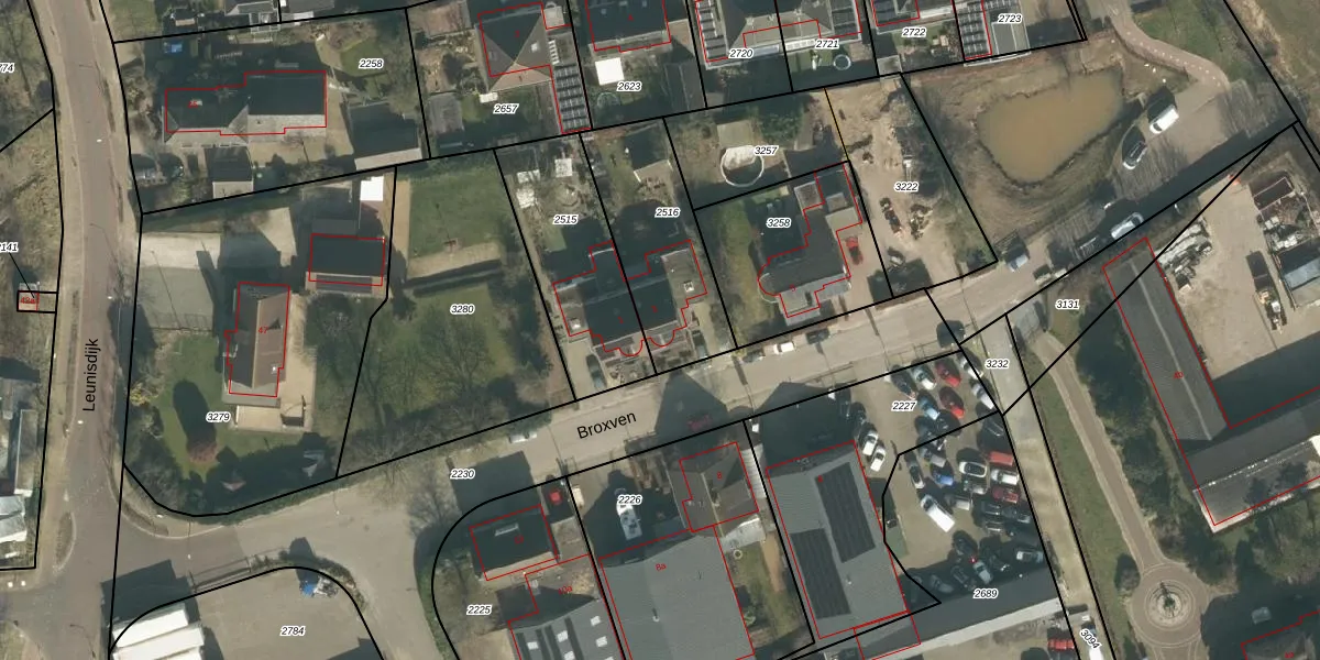 Het perceel waarop Broxven 3 staat heeft een oppervlakte van 494 m². Dit is een groot perceel. De perceeloppervlakte wordt geregistreerd door het Kadaster. Gedetailleerde informatie over de maten van dit perceel kunt u vinden in het rapport Kadastrale kaart met maatvoering van Broxven 3.