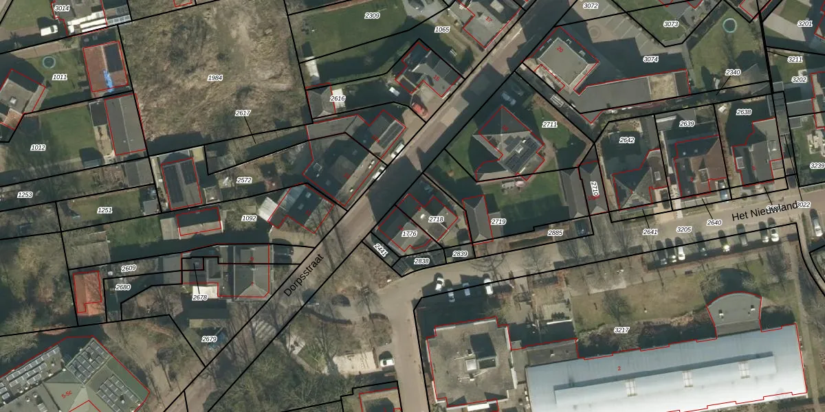 Dorpsstraat 16 is gelegen op kadastraal perceel ESC00B2718. Deze kadastrale aanduiding is uniek en wordt gebruikt door het Kadaster om eigendomsrechten en andere zakelijke rechten vast te leggen. Het perceel maakt onderdeel uit van de kadastrale gemeente Esch.