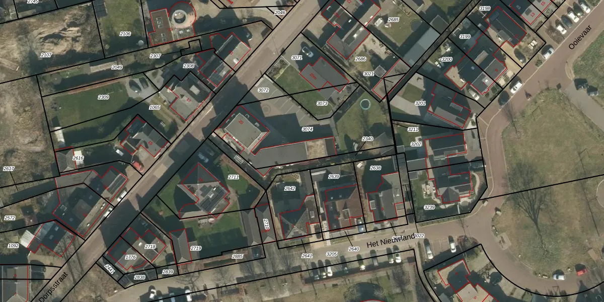 Het perceel waarop Dorpsstraat 20-a staat heeft een oppervlakte van 979 m². Dit is een groot perceel. De perceeloppervlakte wordt geregistreerd door het Kadaster. Gedetailleerde informatie over de maten van dit perceel kunt u vinden in het rapport Kadastrale kaart met maatvoering van Dorpsstraat 20-a.